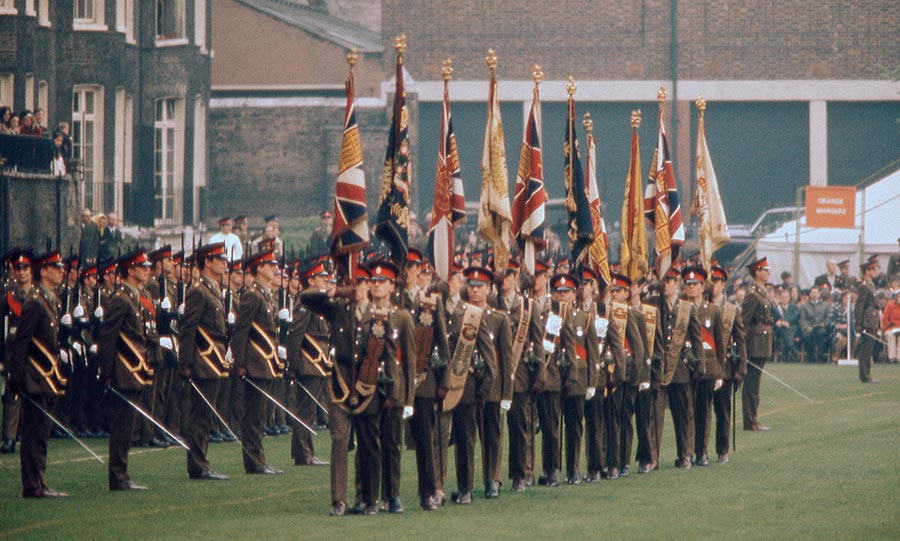 (Click to enlarge) Presentation of new Colours to The Queen’s Regiment, 4th May 1974, Armoury House London